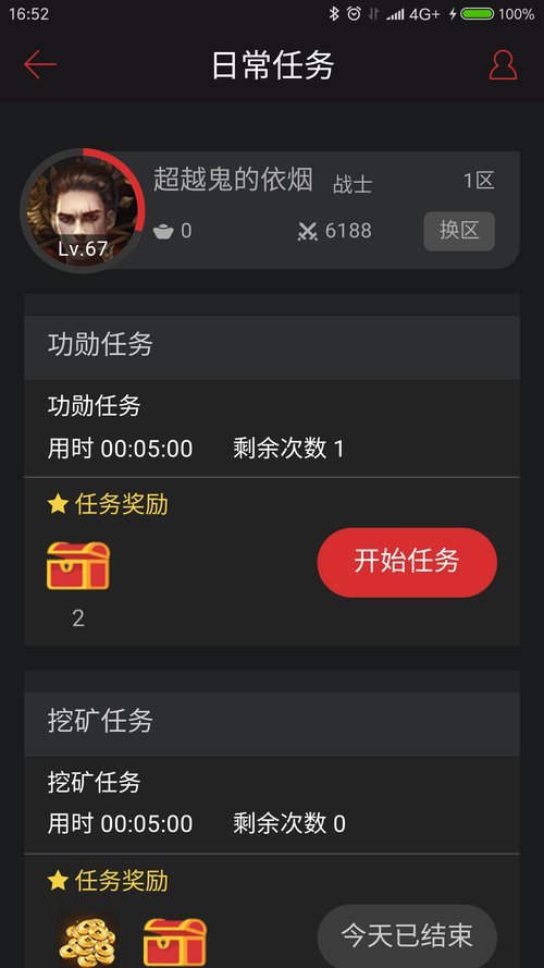 5、任务挂机:现在在手机上也能完成任务挂机啦,进入列表后点击开始挂机就可以啦。注意:中途取消挂机是没有奖励的哦~